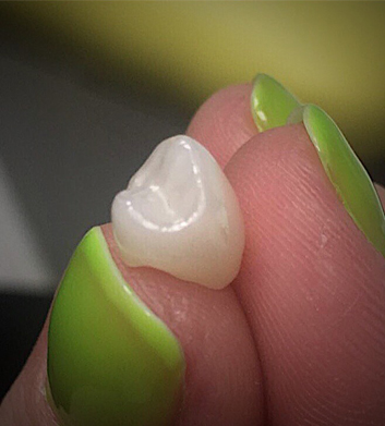 The area is then numbed with local anesthetic; the tooth is shaped using drill to remove decay and unsound tooth structure, eventually making it smaller in order to accommodate for the crown. After shaping, another scan is taken to record changes to prepared tooth. The scans are sent to our in- house CAD/CAM lab for fabrication of a 3D model. A design of your new crown is completed in respect to teeth shape, size and color to make it as natural as it could be in your mouth. Your zirconium restoration is then milled from a block of material that matches the color of your natural teeth.